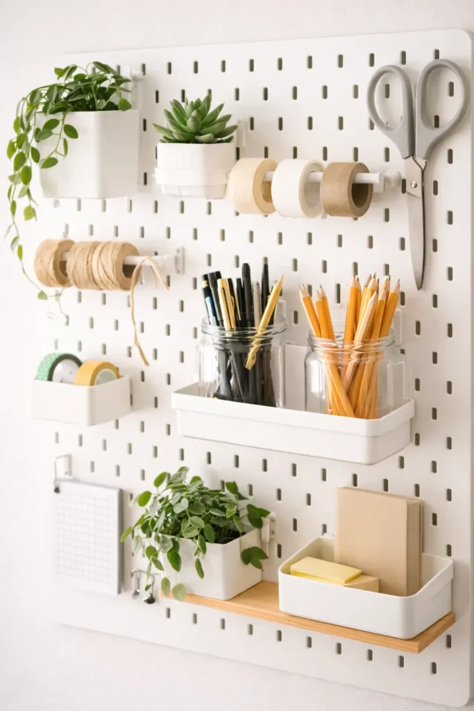 Wall-Mounted Everything: Consider wall-mounted desks, fold-down tables, bike racks, and pegboards in the kitchen or office for tools and utensils.