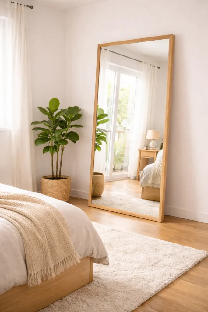 Mirror, Mirror: Place a large mirror opposite a window to double the light and view. A mirrored wardrobe door can also work wonders.
